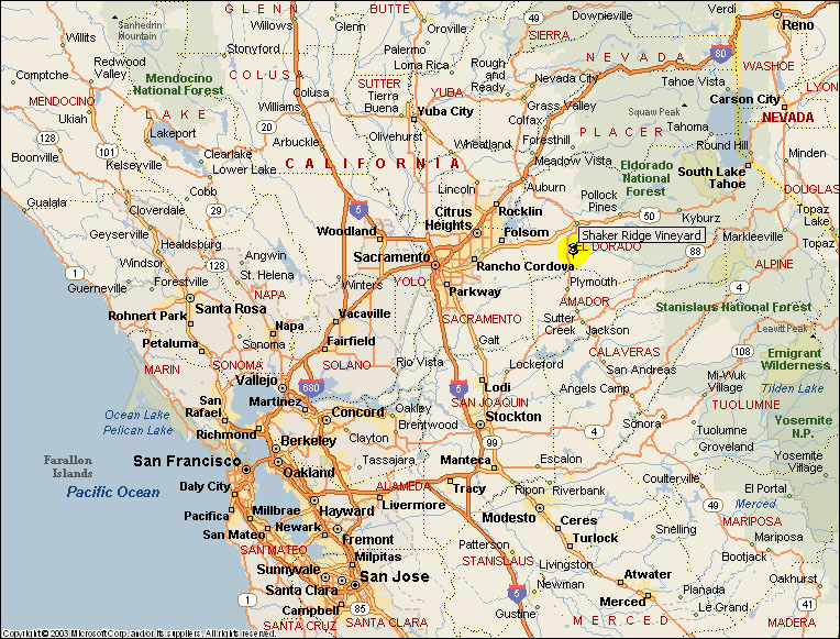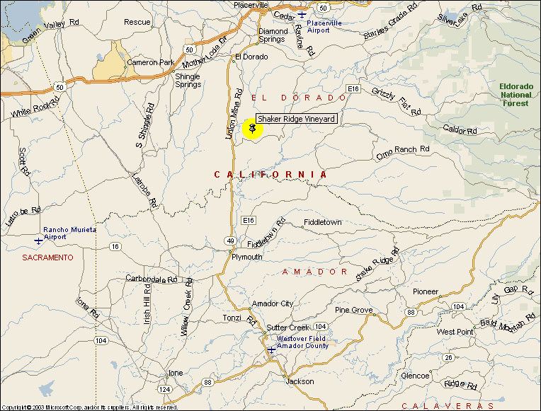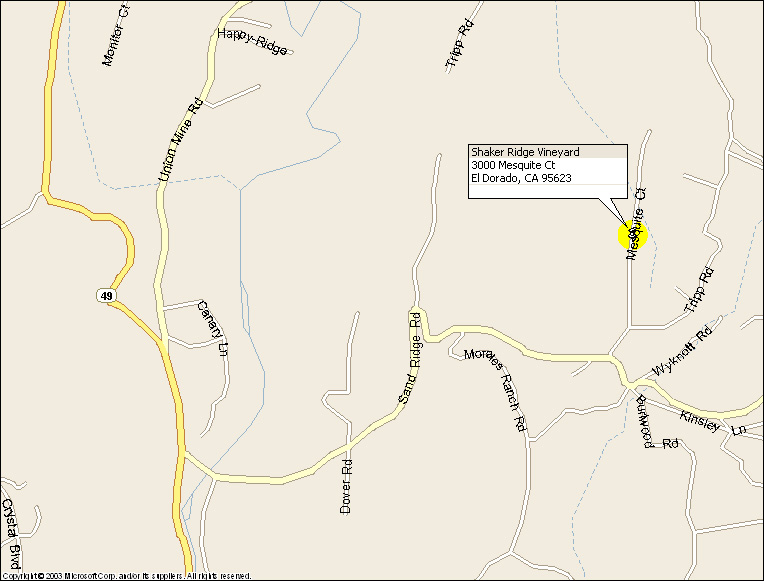 - In 0.25 miles, Shaker Ridge Vineyard (3000 Mesquite Court) will be on your left.
